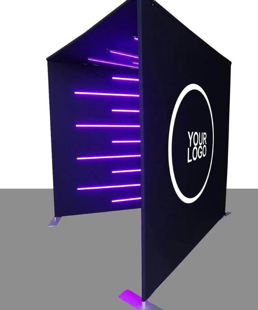 La cabine néon pour une ambiance futuriste à 360° qui attirera la foule et la divertira pendant des heures en créant des contenus optimisés pour le partage sur les réseaux sociaux
