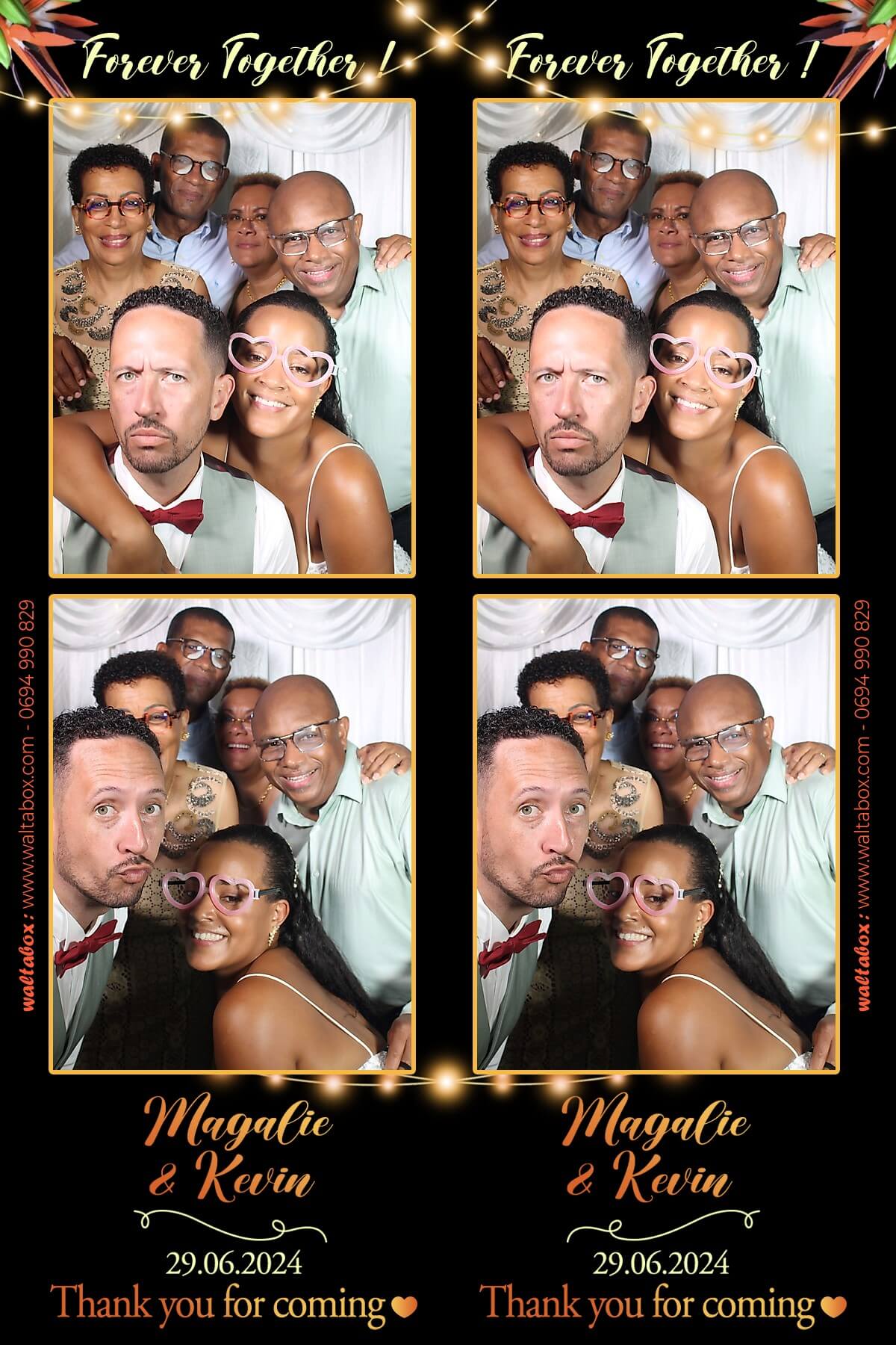 Le tout sur du papier photo de haute qualité, et dans le format de votre choix (carte postale, carré, bandelettes type photomaton, etc.). Idéal pour offrir un souvenir tangible immédiatement et alimenter votre album photo ou livre d’or après l’évènement.