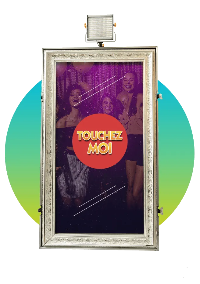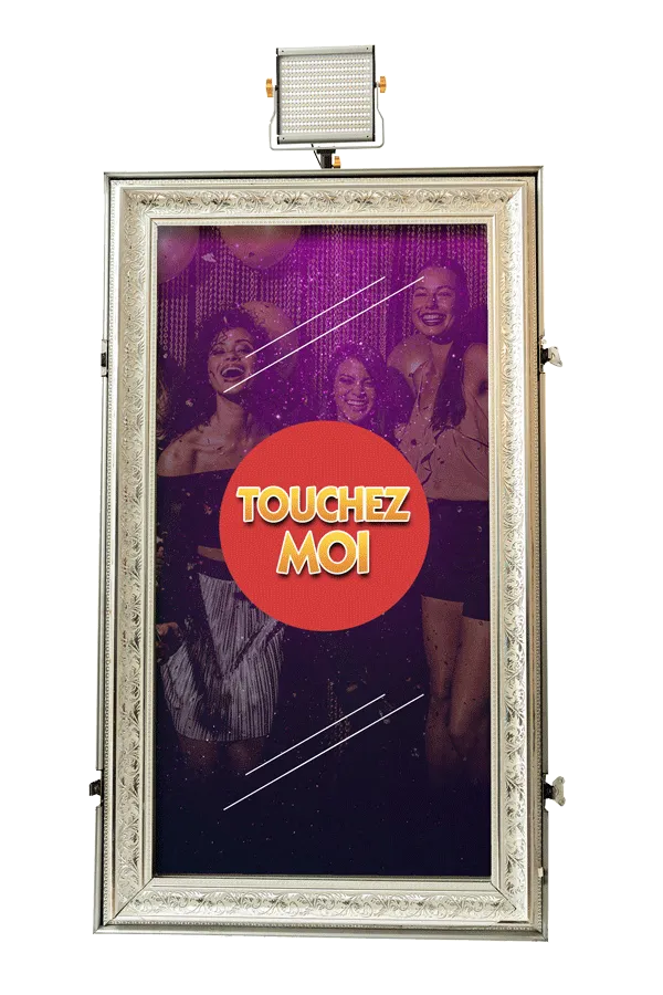 Dotée d’une surface vitrée réfléchissante 100% tactile, la Waltabox Magic Mirror dissimule un écran géant et un appareil photo professionnel qui permettra de vous prendre en photo de la tête aux pieds : la magie opère et vos convives sont envoûtés!